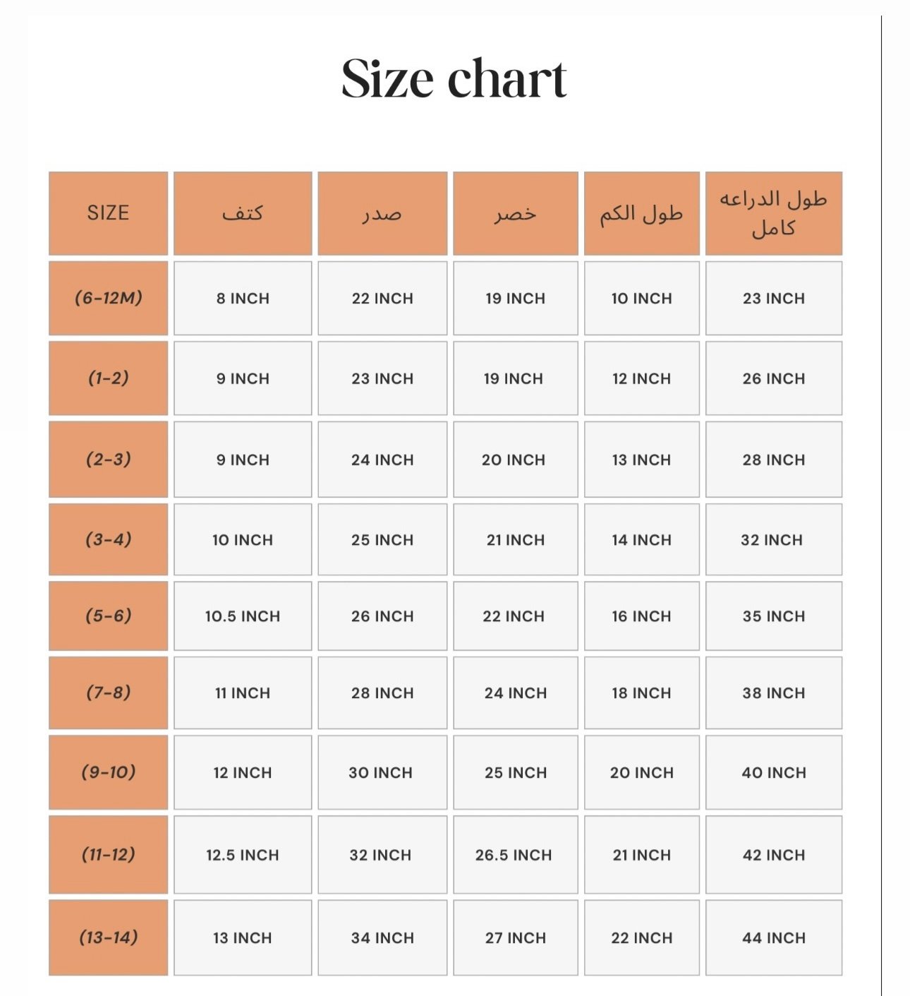 Kids sizes